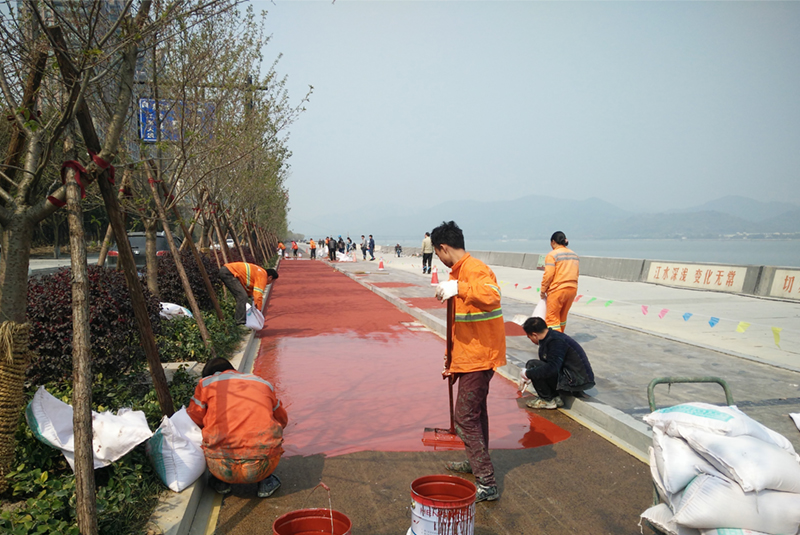 一、選用彩色防滑路面材料   對所用的顏料、填料及溶劑要控制好其含水量;在底漆配方中注意盡量不要用到可溶性的填料;溶劑的使用量盡量提前統籌好,避免過多殘留;如果所處環境比較潮濕,則使用浸透低的基料。 二、施工的過程中,嚴抓每個環節質量。   彩色防滑路面施工的時候盡量避免高溫、濕潤等不良氣候環境,施工外表的溫度應在露點3℃以相對溫度不高于85%;如果施工前涂層遇雨或凝露、結霜等,一定等其完全枯燥后才可以涂刷彩色防滑路面材料;在進行施工之前務必將材料稀釋,攪拌均勻,然后放置一段時間再進行涂刷,特別針對雙組分彩色防滑路面材料,因為它具備一定的熟化期,這樣做的目的就是防止混合不均勻和反響而產生熱,減少氣泡的產生。
